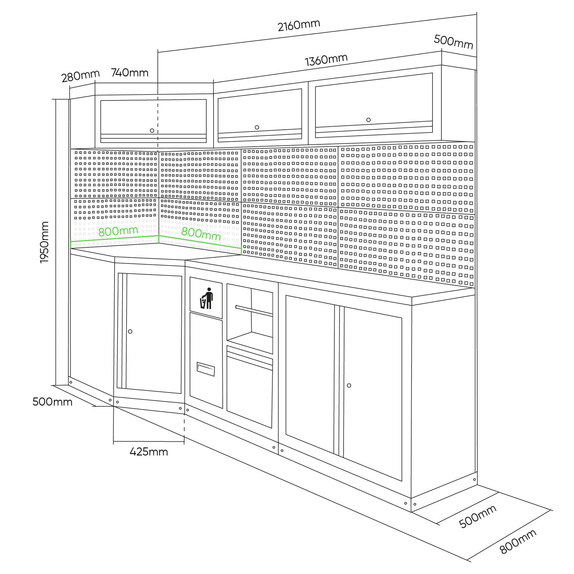 Dimensjoner (LxBxH) 2160x800x1950mm