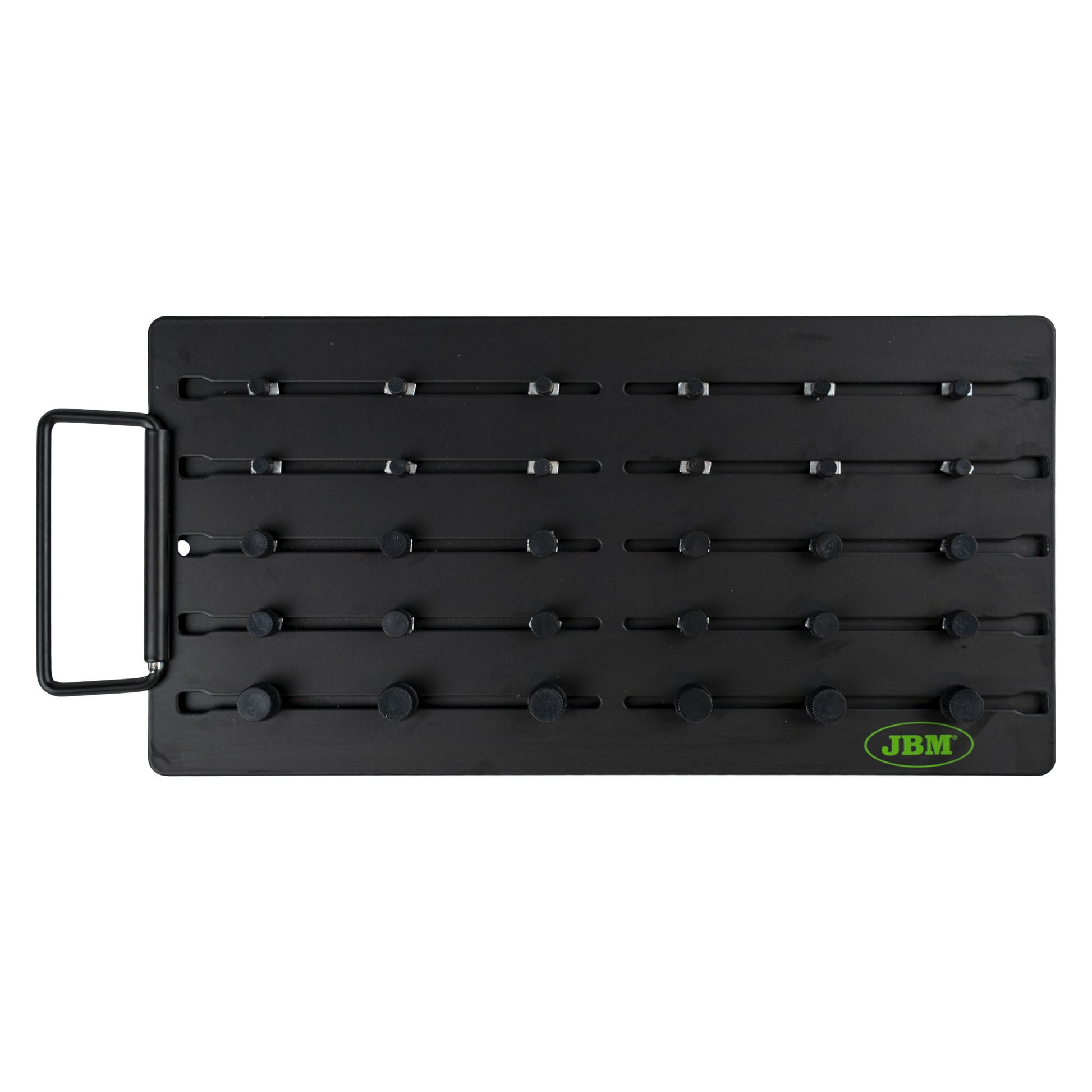 Dette magnetiske organiseringssystemet for pipenøkler inkluderer 36 kontakter i ulike størrelser, designet for å passe stålpiper i ulike mål, kompatible med 1/2", 3/8" og 1/4". Takket være sitt kraftige magnetiske system gir den et sikkert og organisert grep, som optimaliserer plassen og forbedrer effektiviteten i arbeidsplassen din. Den er ideell for å ha de mest brukte skiftenøklene innen rekkevidde, noe som gir rask og enkel tilgang samtidig som man forhindrer tap.